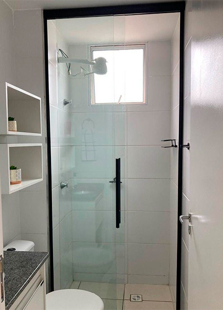 Os boxes para banheiro da Alumix Esquadrias oferecem segurança, praticidade e design moderno. Produzidos com vidro de qualidade e acabamento preciso, garantem durabilidade, fácil manutenção e valorizam o ambiente.